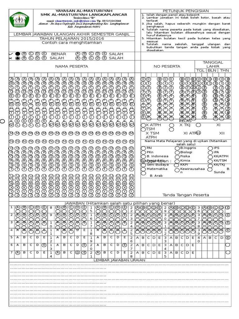 Dengan mekasud membagikan lembar jawaban komputer ljk hanya sekedar referensi, didalam file ini terbagi dua bagian. Aplikasi ujian online aplikasi ujian sekolah berbasis komputer download 17 template word untuk sampul laporan cover page. Ljk biasanya digunakan untuk formulir yang berbentuk ujian pilihan ganda kuesioner formulir register dan pendapantan. Dalam penelitian ini untuk membantu proses tataletak. download kunci jawaban prediksi soal dan kunci jawaban un mapel matematika smp tahun 2016 atau tahun pelajaran 2015/2016 ( unduh ) lembar jawaban komputer pdf download: